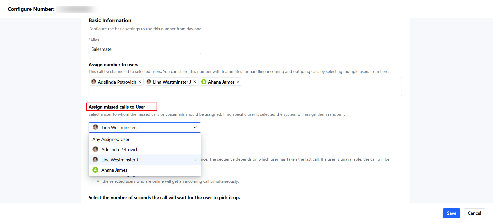 Also, we have an update: If a user misses a call, you now have the option to assign the missed call to a specific user.